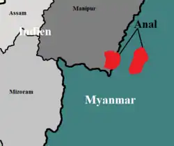 Elle est parlée en Birmanie et en Inde. Selon le recensement de 2011, 27 217 indiens ont l'anal pour langue maternelle, dont 26 508 au Manipur[1]. Ses dialectes connus sont le laizo et le malshom.