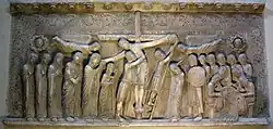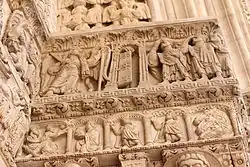 Saint-Gilles, tympan de la Crucifixion et son linteau.