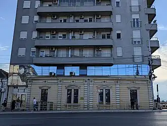 La maison a été construite dans un style académique avec des pilastres accentués sur la façade principale et des tympans triangulaires ou surbaissés au-dessus des fenêtres ; des médaillons circulaires et carrés avec des motifs floraux et géométriques ornent l'entablement en-dessous de la corniche du toit[2].