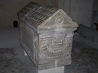 On peut lire sur l'une de ses deux longues faces l'inscription païenne suivante, en l'honneur du défunt (un garçon de cinq ans):
