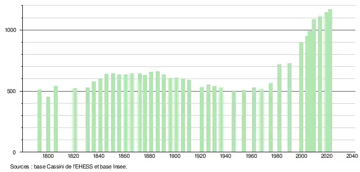 - ↑ Fiches Insee - Populations de référence de la commune pour les années 2006, 2007, 2008, 2009, 2010, 2011, 2012, 2013, 2014, 2015, 2016, 2017, 2018, 2019, 2020, 2021 et 2022.