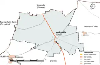 Réseau routier principal de la commune de Andonville (avec indication du trafic routier 2014).