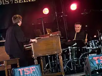 André Charlier (batterie) avec Benoît Sourisse (orgue) au festival Django Reinhardt 2009 de Samois-sur-Seine