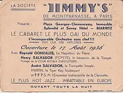 En 1935, avec son orchestre Olahée! Quartette, André Salvador joue le jazz-hot au Villon, à la Villa d’Este, etc. En 1936, il joue au Mirage, la boîte d’Ernest Léardée, avec son frère Henri[2]. En 1937, André et Henri sont engagés à Paris au Jimmy’s Bar, qui est un haut lieu de rencontre pour bon nombre de musiciens.
