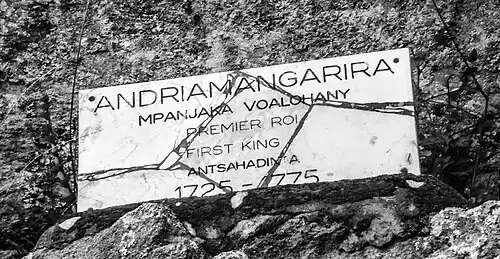 - ↑ Rabenjamina, Tantaran’Andriana: Andriamangarira, Mpanjaka fahagola teo Antsahadinta sy ny Zanamangarira taranany, Imprimerie-Antananarivo 4 Bis, rue Gallieni, Antananarivo, 1950, p. 20.