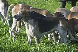 - Grand anglo-français, descendant principalement du Poitevin, du Gascon-Saintongeois croisé avec le Fox-hound.