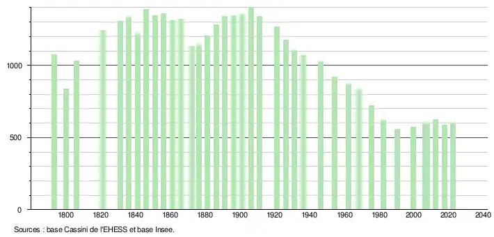 - ↑ Fiches Insee - Populations de référence de la commune pour les années 2006, 2007, 2008, 2009, 2010, 2011, 2012, 2013, 2014, 2015, 2016, 2017, 2018, 2019, 2020, 2021 et 2022.