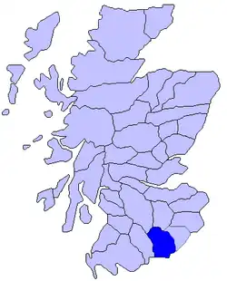 Annandale est également un ancien district d'Écosse, situé en bordure du Liddesdale à l'est, du Nithsdale à l'ouest, du Clydesdale et du Tweeddale au nord et du Solway Firth au sud.