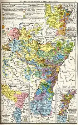 Les territoires du Saint-Empire romain germanique, correspondant aujourd'hui aux régions historiques de l'Alsace-Moselle étant très fragmentés, il fut relativement facile, pour le royaume de France, d'y appliquer une politique annexionniste en fonction d'une frontière « naturelle », le Rhin. Ainsi, furent annexés à la France les territoires des Trois-Évêchés, ceux de Strasbourg et des villes de la décapole, et ceux du Duché de Lorraine. Au XIXe siècle, une partie de ces territoires, considérés comme germaniques, fut annexée par le nouvellement créé Empire allemand, de 1871 à 1918, puis par le Troisième Reich, de 1940 à 1945.