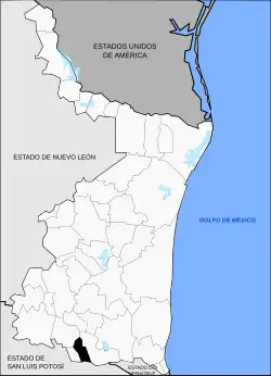 Elle est limitrophe au nord-ouest de celle d'Ocampo, à l'ouest de celle de Nuevo Morelos, au sud, dans l'État de San Luis Potosí, de celle de Ciudad Valles, et à l'est, à nouveau dans l'État de Tamaulipas, de celle d'El Mante[5].