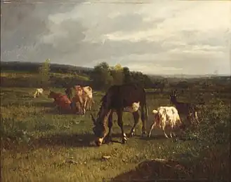 Ses peintures sont principalement liées aux paysages et aux représentations de la campagne française avec du bétail, il peint également quelques portraits et des tableaux religieux[2].