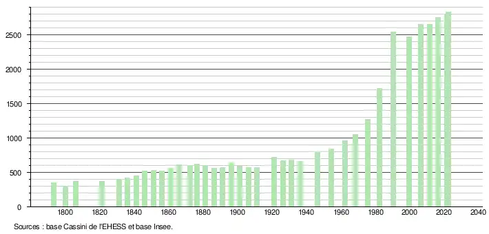 - ↑ Fiches Insee - Populations de référence de la commune pour les années 2006, 2007, 2008, 2009, 2010, 2011, 2012, 2013, 2014, 2015, 2016, 2017, 2018, 2019, 2020, 2021 et 2022.