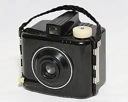1900. Brownie fut le nom d'une longue série d'appareils photo populaires produits par Eastman Kodak. Le Brownie popularisa le concept de la photographie bon marché et de la prise de vue instantanée. Le premier Brownie apparait en février 1900[12] : c'était un modèle très simple avec un simple ménisque comme objectif, au format 6 x 6 cm. Il était vendu au prix de 10 dollars[2],[3],[4],[5],[9].