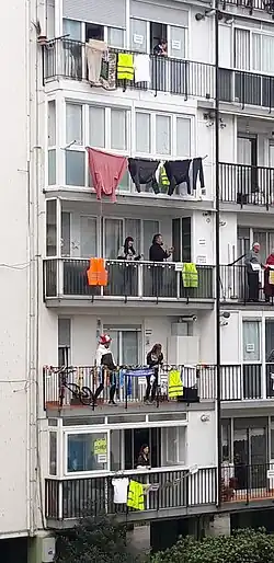 Les applaudissements aux fenêtres pendant la pandémie de Covid-19 sont une pratique adoptée par les habitants de nombreux pays, par laquelle ils entendent remercier les professionnels de santé durant les confinements du premier semestre liés à la pandémie de Covid-19.