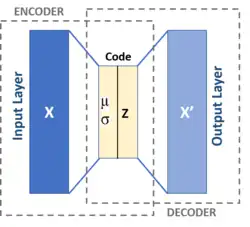 Celles-ci sont inspirées des machines de Helmholtz[17] et combinent un réseau de probabilité avec des réseaux de neurones. Un Autoencoder est un réseau CAM à 3 couches, où la couche intermédiaire est censée être une représentation interne des modèles d'entrée. Le réseau neuronal du codeur est une distribution de probabilité (z étant donné x) et le réseau du décodeur est (x étant donné z). Les poids sont nommés et plutôt que W et V comme dans Helmholtz - une différence cosmétique. Ces 2 réseaux ici peuvent être entièrement connectés ou utiliser un autre schéma NN.