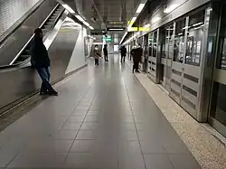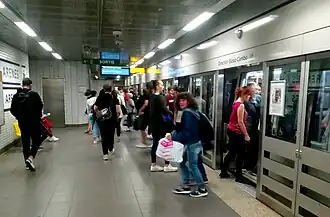 La station est souterraine, sur trois niveaux[9] : au premier niveau se trouvent les quais, le deuxième, niveau intermédiaire, permet la desserte des deux quais[10] et le troisième niveau possède la salle des billets et les accès. Elle possède deux accès, situés côté sud, par différents escaliers, tunnels ou ascenseurs. Les quais comptent douze portes, ce qui leur permet d'accueillir des rames doubles, de quatre voitures, mesurant 52 m.