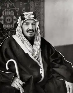 Alors que le terme « Arabie » désigne la péninsule arabique dans son ensemble, l'adjectif « saoudite » évoque les Al Saoud, et en particulier Abdelaziz ibn Saoud dit « Ibn Saoud », qui reconquit ce pays au profit de sa famille en 1932 et en fit le « Royaume arabe saoudien » (en arabe al-Mamlakat al-°Arabīyat as-Sa°ūdīyat ; المملكة العربية السعودية), en français le « royaume d'Arabie saoudite »[14], ou en plus court السعودية (es-saoudia), que l'on pourrait traduire par la « Saoudite » ou la « Saoudie ». « Saoud » se réfère ici à Saoud ben Mohammed Al Mouqrin, le père de Mohammed Ibn Saoud, patriarche de la famille et fondateur en 1744[15] du premier État saoudien.