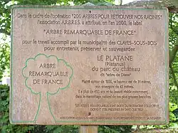 Cet arbre a reçu en le label « arbre remarquable de France » attribué par l'association A.R.B.R.E.S. (Arbres remarquables, bilan, recherches, études et sauvegarde)[2].
