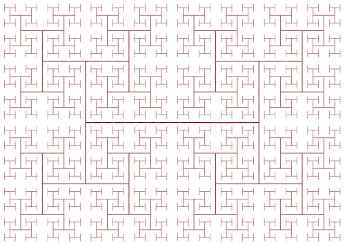 Un arbre en H est une fractale autosimilaire ; sa dimension de Hausdorff est égale à 2[2]. C'est une courbe remplissante.