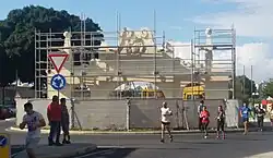 Un rond-point avec une fontaine a ensuite été construit à l'emplacement de l'arc[9]. Certaines arches de l'aqueduc ont été démolies afin d'élargir la route et de faire place à ce rond-point[5].