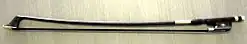 - le bouton, composé d'un cylindre de bois d'ébène du diamètre de la baguette, est garni de bagues d'argent, d'or ou de maillechort. De plus, il peut être décoré de nacre ou être ciselé. Tandis que sur les archets anciens, il est généralement fabriqué en bois, en ivoire ou en os.