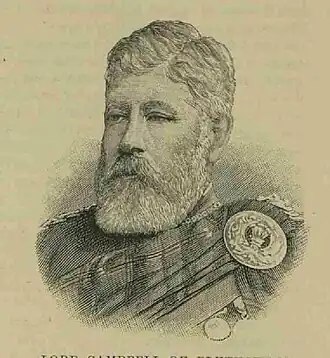 Campbell rejoint le 79th Highlanders à l'âge de 16 ans et participe à la guerre de Crimée en 1855, où il est grièvement blessé. Il est transféré aux Scots Fusilier Guards et atteint le grade de lieutenant-colonel. Le 7 juillet 1864, il épouse Augusta Clementina Carrington, fille de Robert Carington, à Whitehall Chapel, Londres. Il se retire de l'armée en 1868 à la mort de son père [3]. Il est pendant de nombreuses années lié au 3e (The Blythswood) Volunteer Battalion de la Highland Light Infantry, où il est colonel, et à partir du 28 mai 1902 colonel honoraire.
