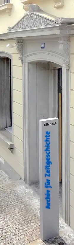 - ↑ (de) « Stiftung Archiv für Zeitgeschichte », sur www.monetas.ch, Monetas (consulté le ).