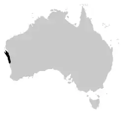 Cette espèce est endémique d'une toute petite région côtière de l'Australie-Occidentale entre Geraldton et la baie Shark ainsi que sur l'île Dirk Hartog[1],[2]. Elle se rencontre jusqu'à 150 m d'altitude.