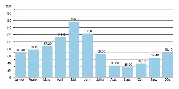 Le module de la rivière à Pinsaguel est de 76,4 m3/s[2].