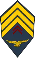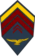 | Appellation | Aviateur | Aviateur | Caporal | Caporal-chef | Sergent | Chef | Mon adjudant | Mon adjudant-chef |