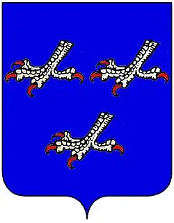 Les Landevoisin portent : D'azur à 3 griffes d'argent armées de gueules 2 et 1[4] ; supports deux sauvages debout avec massues.