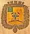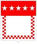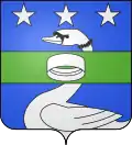 D'argent, à une couronne de feuillage de sinople, liée en bas de deux rubans de gueules, au chef de gueules, semé d'étoiles d'argent.[6],[7] |