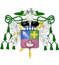 Écartelé : au 1, des comtes sénateurs (du Royaume) ; au 2, d'azur à une mître d'argent ornée de pierres pécieuses, accolée d'un bâton pastoral et d'une croix trifoliée, posés en sautoir ; au 3, d'azur à deux ruches d'argent mouvant de la pointe surmontées de trois abeilles d'or rangées en fasce ; au 4, de sinople à deux barres d'argent.[8] |