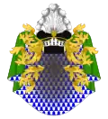 Écartelé : au 1, des comtes ministres du Royaume ; au 2, d'azur à deux clefs adossées d'argent et attachées par un anneau du même ; au 3, d'argent à la barre d'azur ; au 4, de sinople, à une tête de chien d'or.[15] |