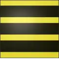 D'or, à trois fasces de sable, l'écu en bannière |