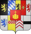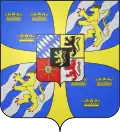 écartelé en 1 et 4 de sable, au lion d'or, armé, lampassé et couronné de gueules et en 2 et 3 fuselé en bande d'azur et d'argent, sur le tout de gueules à la couronne de Charlemagne d'or |