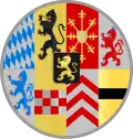 écartelé en 1 et 4 de sable, au lion d'or, armé, lampassé et couronné de gueules (Palatin) et en 2 et 3 fuselé en bande d'azur et d'argent (Bavière), sur le tout de gueules à la couronne de Charlemagne d'or (prince-électeur et archi-trésorier d'Empire) parti de sable au lion d'or contourné armé, couronné et lampassé de gueules (Palatinat du Rhin, contourné) et fuselé en bande d'azur et d'or (Wittelsbach), enté en pointe de gueules à l'orbe crucifère d'or (dignité d'archisénéchal d'Empire)[9]. |