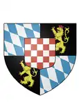 de sable, au lion d'or, armé, lampassé et couronné de gueules et en 2 et 3 fuselé en bande d'azur et d'argent[2]. Le comte palatin, comme titulaire de la dignité électorale y ajoute l'écu d'archi-sénéchal de l'Empire : gueules à l'orbe d'or cerclée de même[3]. |