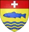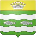 De sinople aux deux fasces ondées d'argent, accompagnées de deux truites du même entre les fasces, au chef d'or chargé d'une couronne comtale d'argent. |