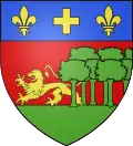 D'azur au chêne de sinople englanté du même et fûté de sable, accosté de deux pots à l'antique au naturel, accompagné d'une tierce ondée d'argent en pointe ; au chef cousu de gueules chargé d'un écu gironné d’argent et de gueules, adextré d'un lion et senestré d'une fleur de lys, tous deux d'or.