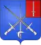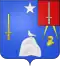 D'azur à l'épée d'argent, et deux baïonnettes du même passées en sautoir, brochant sur l'épée ; au franc-quartier de gueules à sénestre, une épée haute en pal d'argent qui est des barons militaires de l'Empire. L'écu coiffé d'une toque de velours noir retroussé de contre-vair, avec porte-aigrette d'argent surmontée de trois plumes blanches et accompagnées de deux lambrequins d'argent[37],[38]. |