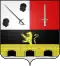 Coupé au premier parti à dextre d'azur au sautoir cousu de gueules, chargé de cinq coquilles d'argent, et cantonné de vingt étoiles du même, six en chef, six en pointe, quatre sur chaque flanc : à senestre des barons tirés de l'armée ; au deuxième d'argent à la forteresse en ruines de sable, ajourée, ouverte et enflammée de gueules adextrée d'un lion rampant de gueules, tenant de la dextre une épée du même.[20] |