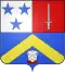 Parti de gueules et d'azur à une bande d'or, accompagnée de deux étoiles du même, une en chef, une en pointe ; au franc-quartier des Barons militaires de l'Empire.''[8],[1],[3] |