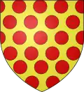 Armes : De pourpre semé de croisettes d'or, au léopard d'argent armé et lampassé de gueules brochant sur le tout[5]. Cimier : une tête de léopard d'argent, lampassée de gueules. Supports : deux léopards d'argent, armés et lampassés de gueules. Devise : DE GALLES DE GALLES Variantes : De pourpre semé de billettes d'or. Léopard non lampassé. ![]()