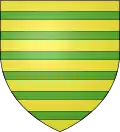 Armes : D'or au griffon de sinople armé, becqué et membré d'argent[20]. Cimier : un griffon issant de sinople, becqué d'or. Supports : deux griffons de sinople, becqués d'or. Devise : A TOVTES BESTES CLOC Variantes : Griffon passant. Griffon couard. ![]()