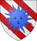 Armes : De sable à un rais d'escarboucle d'or[3]. Cimier : un rais d'escarboucle d'or. Supports : deux ours de sable. Devise : HORS DV DÉSERT |
