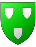 De sinople (ou d'azur), à trois écussons d'argent, |