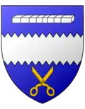 D'azur à une paire de ciseaux d'argent ouverts en sautoir |