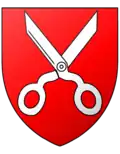 De gueules, à la paire de ciseaux d'argent, ouverts en sautoir |