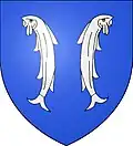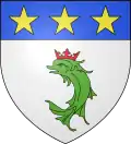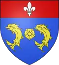 D'azur au poisson d'argent posé en fasce, accompagné de trois fleurs de lys d'or, une en chef, une en pointe, et une à dextre à la tête du poisson, cette dernière défaillante à senestre.